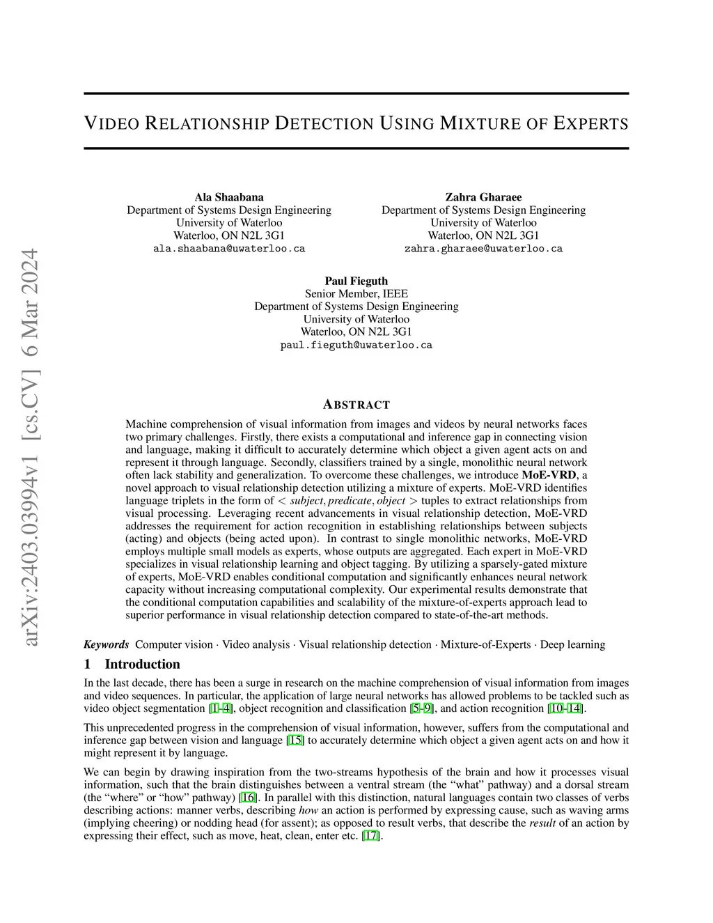 Video Relationship Detection Using Mixture of Experts