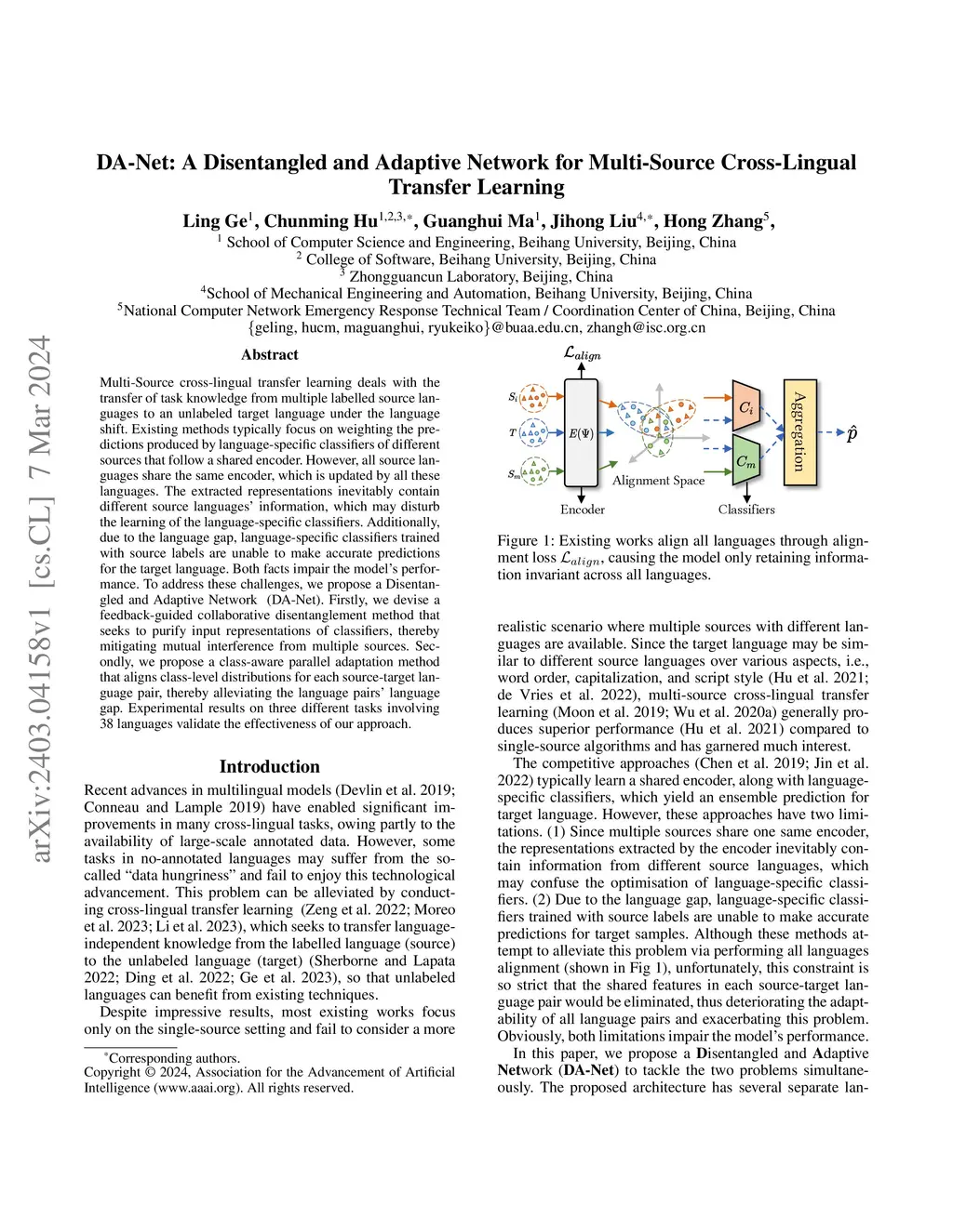 DA-Net: A Disentangled and Adaptive Network for Multi-Source