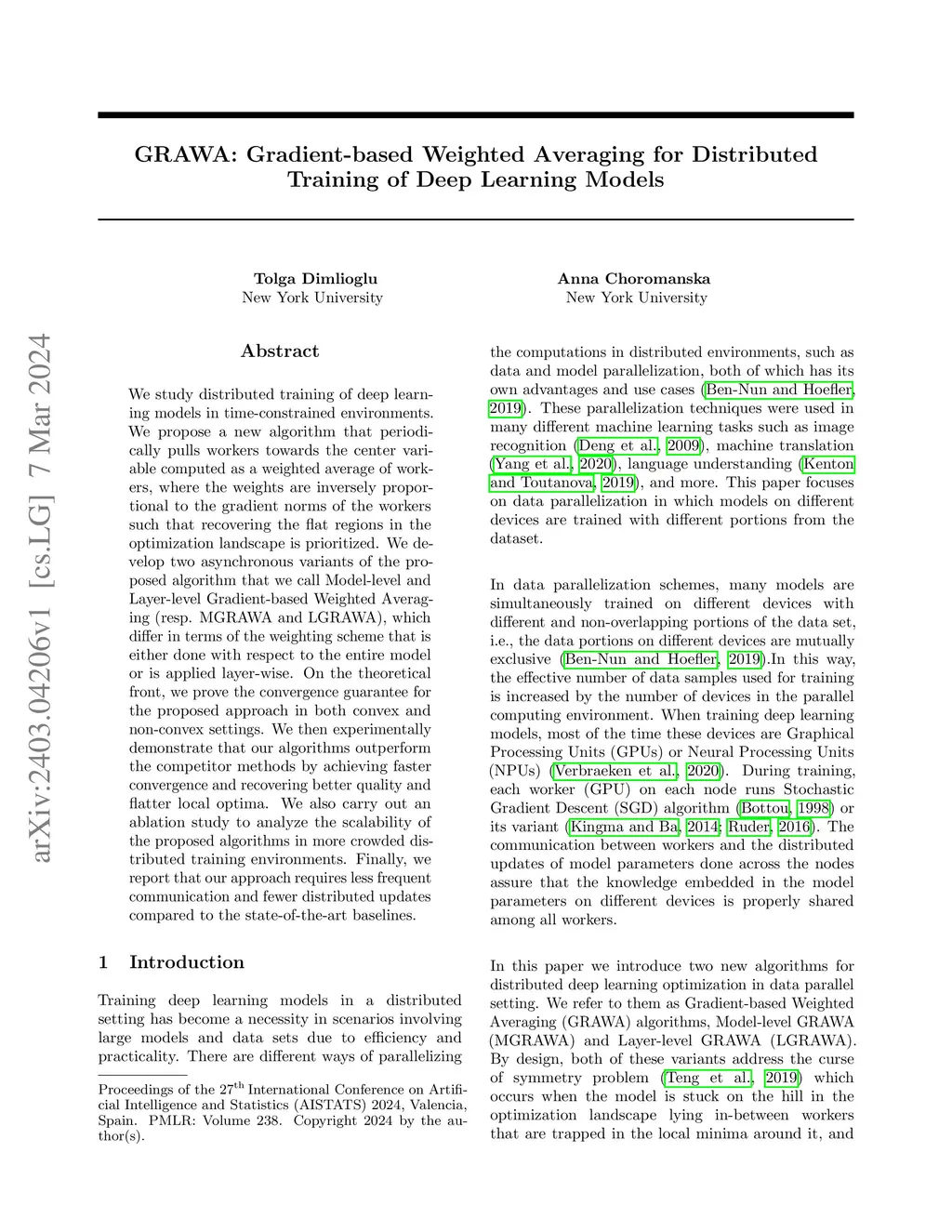 GRAWA: Gradient-based Weighted Averaging for Distributed Training of