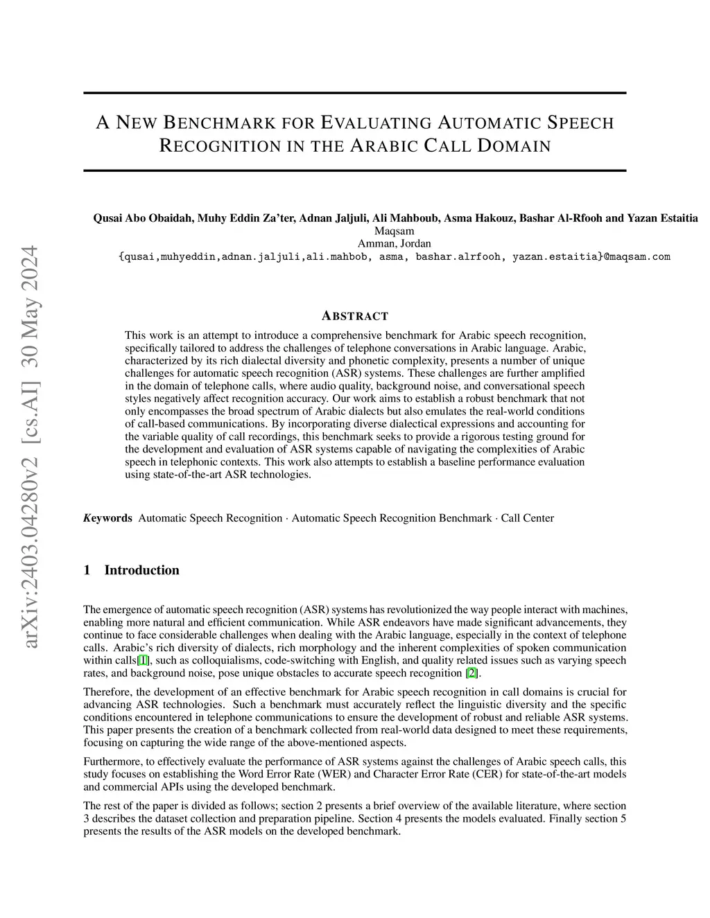 This work is an attempt to introduce a comprehensive benchmark for Arabic speech recognition, specifically tailored to address the challenges of telephone conversations in Arabic language. Arabic, characterized by its rich dialectal diversity and phonetic complexity, presents a number of unique challenges for automatic speech recognition (ASR) systems. These challenges are further amplified in the domain of telephone calls, where audio quality, background noise, and conversational speech styles negatively affect recognition accuracy. Our work aims to establish a robust benchmark that not only encompasses the broad spectrum of Arabic dialects but also emulates the real-world conditions of call-based communications. By incorporating diverse dialectical expressions and accounting for the variable quality of call recordings, this benchmark seeks to provide a rigorous testing ground for the development and evaluation of ASR systems capable of navigating the complexities of Arabic speech in telephonic contexts. This work also attempts to establish a baseline performance evaluation using state-of-the-art ASR technologies.