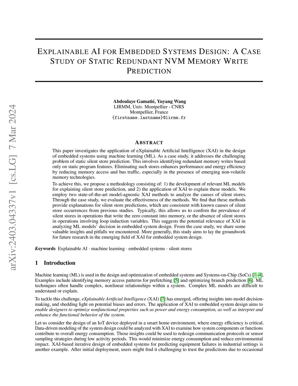 Explainable AI for Embedded Systems Design: A Case Study of Static