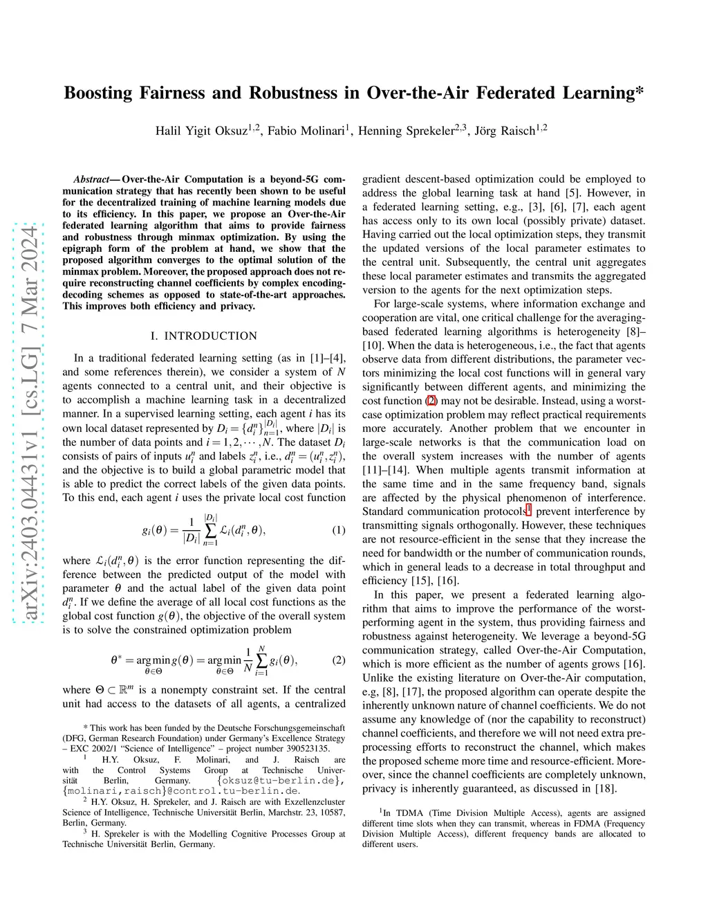 Over-the-Air Computation is a beyond-5G communication strategy that has recently been shown to be useful for the decentralized training of machine learning models due to its efficiency. In this paper, we propose an Over-the-Air federated learning algorithm that aims to provide fairness and robustness through minmax optimization. By using the epigraph form of the problem at hand, we show that the proposed algorithm converges to the optimal solution of the minmax problem. Moreover, the proposed approach does not require reconstructing channel coefficients by complex encoding-decoding schemes as opposed to state-of-the-art approaches. This improves both efficiency and privacy.