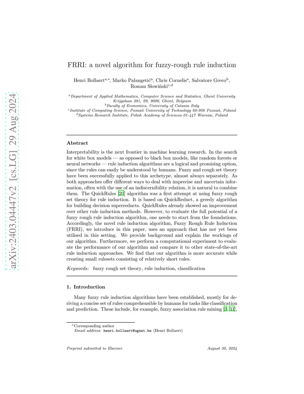 FRRI: a novel algorithm for fuzzy-rough rule induction