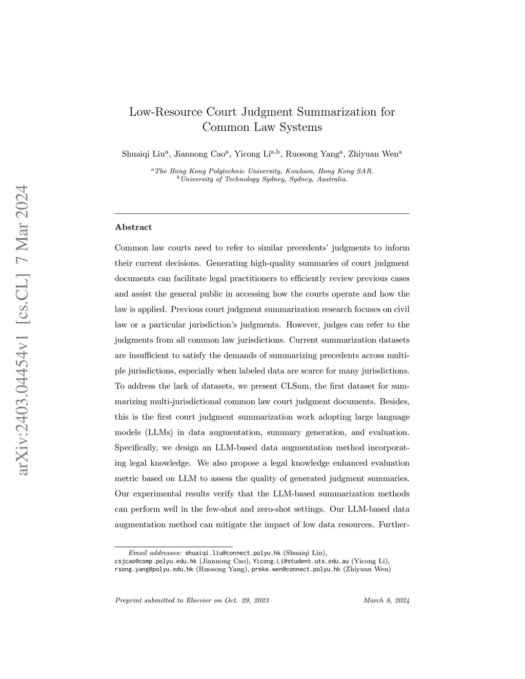 Low-Resource Court Judgment Summarization for Common Law Systems
