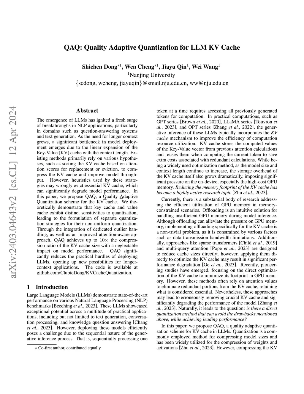 QAQ: Quality Adaptive Quantization for LLM KV Cache