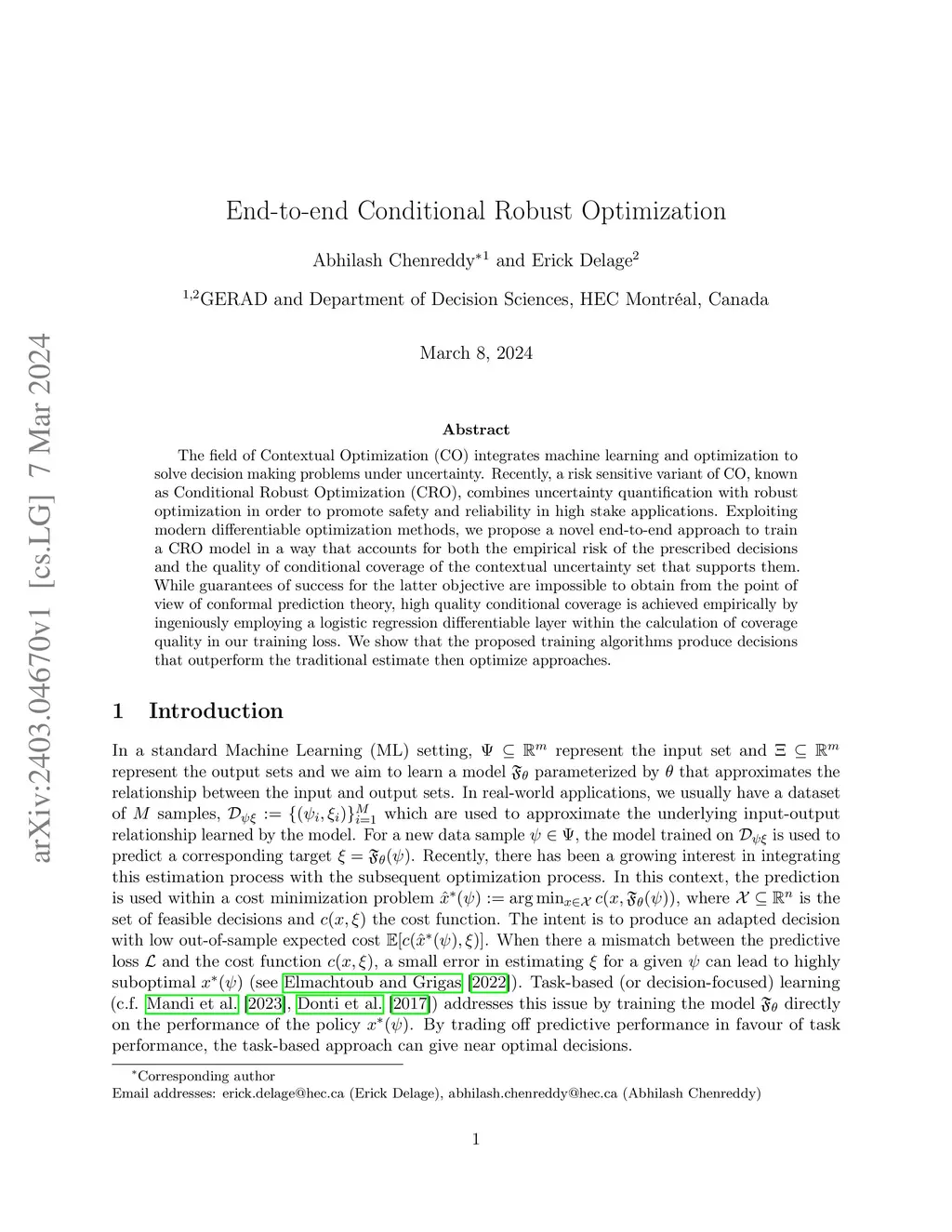 The field of Contextual Optimization (CO) integrates machine learning and optimization to solve decision making problems under uncertainty. Recently, a risk sensitive variant of CO, known as Conditional Robust Optimization (CRO), combines uncertainty quantification with robust optimization in order to promote safety and reliability in high stake applications. Exploiting modern differentiable optimization methods, we propose a novel end-to-end approach to train a CRO model in a way that accounts for both the empirical risk of the prescribed decisions and the quality of conditional coverage of the contextual uncertainty set that supports them. While guarantees of success for the latter objective are impossible to obtain from the point of view of conformal prediction theory, high quality conditional coverage is achieved empirically by ingeniously employing a logistic regression differentiable layer within the calculation of coverage quality in our training loss. We show that the proposed training algorithms produce decisions that outperform the traditional estimate then optimize approaches.