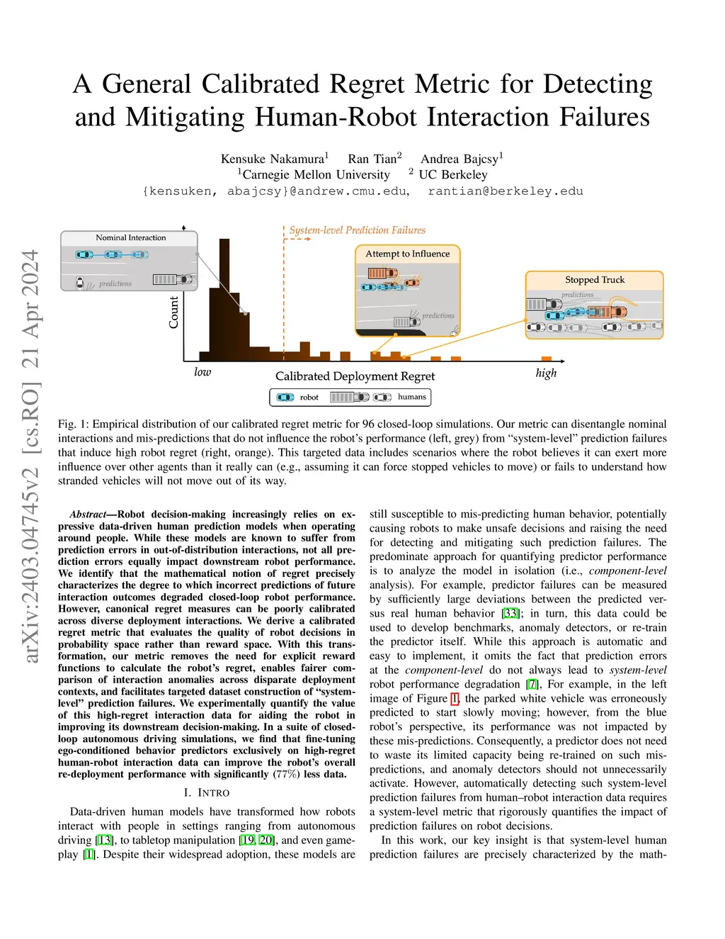 Robot decision-making increasingly relies on expressive data-driven human prediction models when operating around people. While these models are known to suffer from prediction errors in out-of-distribution interactions, not all prediction errors equally impact downstream robot performance. We identify that the mathematical notion of regret precisely characterizes the degree to which incorrect predictions of future interaction outcomes degraded closed-loop robot performance. However, canonical regret measures can be poorly calibrated across diverse deployment interactions. We derive a calibrated regret metric that evaluates the quality of robot decisions in probability space rather than reward space. With this transformation, our metric removes the need for explicit reward functions to calculate the robot's regret, enables fairer comparison of interaction anomalies across disparate deployment contexts, and facilitates targeted dataset construction of "system-level" prediction failures. We experimentally quantify the value of this high-regret interaction data for aiding the robot in improving its downstream decision-making. In a suite of closed-loop autonomous driving simulations, we find that fine-tuning ego-conditioned behavior predictors exclusively on high-regret human-robot interaction data can improve the robot's overall re-deployment performance with significantly (77%) less data.