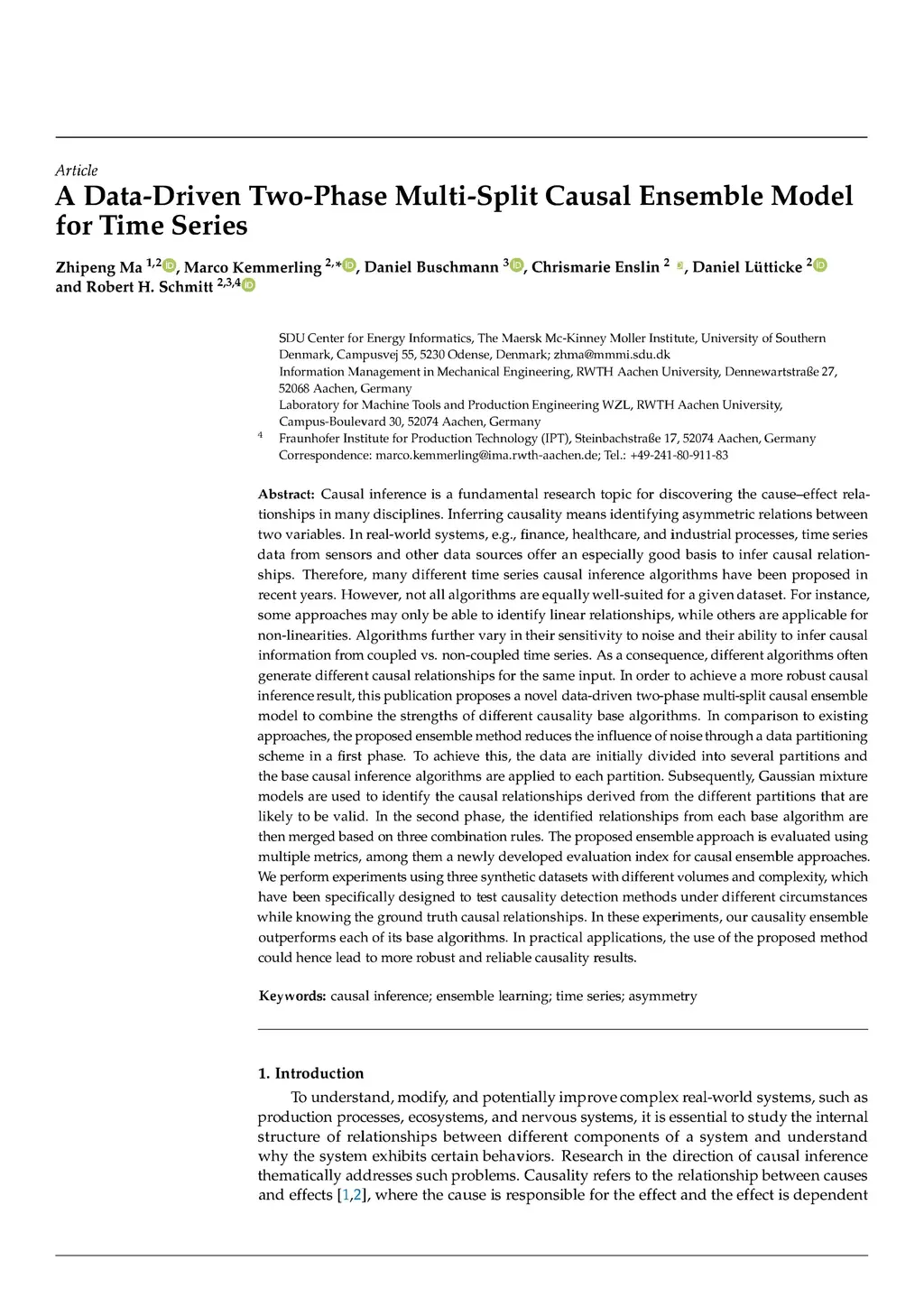 A Data-Driven Two-Phase Multi-Split Causal Ensemble Model for Time