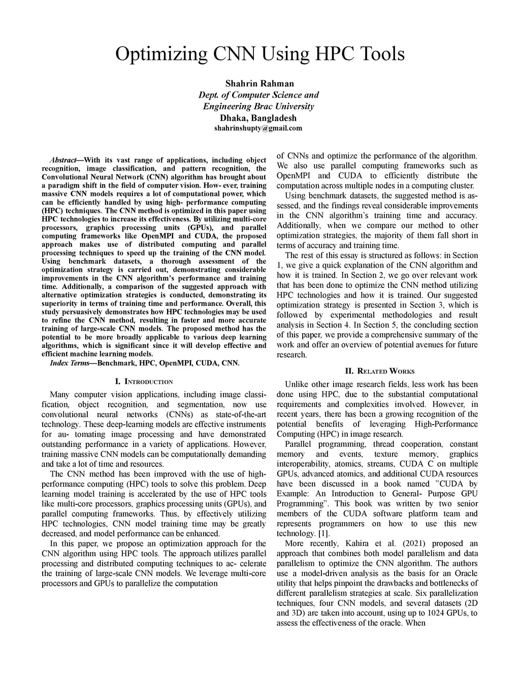 Optimizing CNN Using HPC Tools