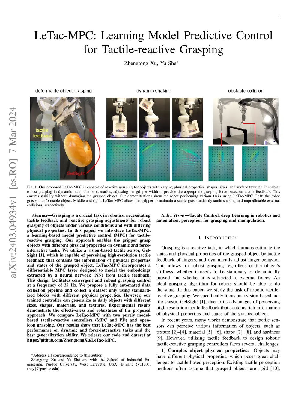 LeTac-MPC: Learning Model Predictive Control for Tactile-reactive
