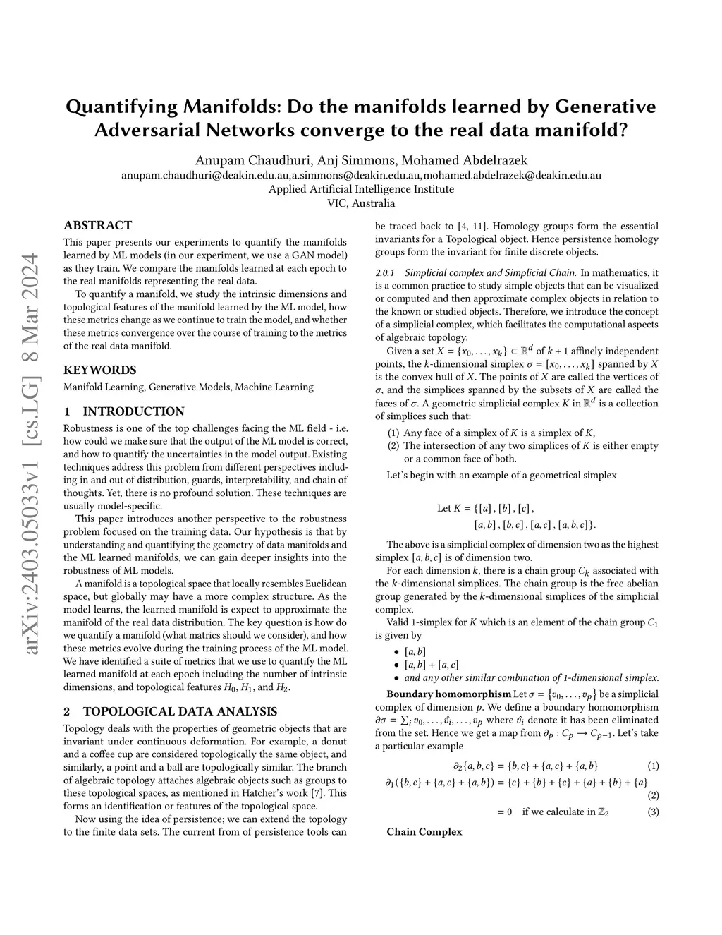 This paper presents our experiments to quantify the manifolds learned by ML models (in our experiment, we use a GAN model) as they train. We compare the manifolds learned at each epoch to the real manifolds representing the real data. To quantify a manifold, we study the intrinsic dimensions and topological features of the manifold learned by the ML model, how these metrics change as we continue to train the model, and whether these metrics convergence over the course of training to the metrics of the real data manifold.