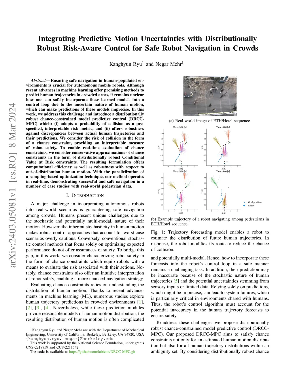 Integrating Predictive Motion Uncertainties with Distributionally Robust