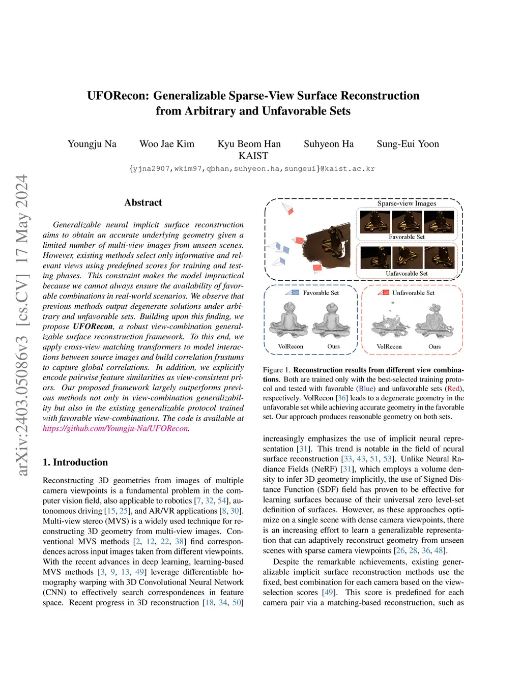 UFORecon: Generalizable Sparse-View Surface Reconstruction from