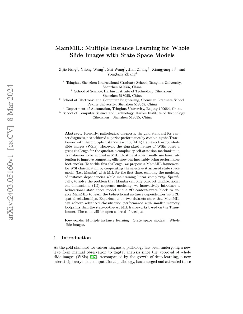 MamMIL: Multiple Instance Learning for Whole Slide Images with State