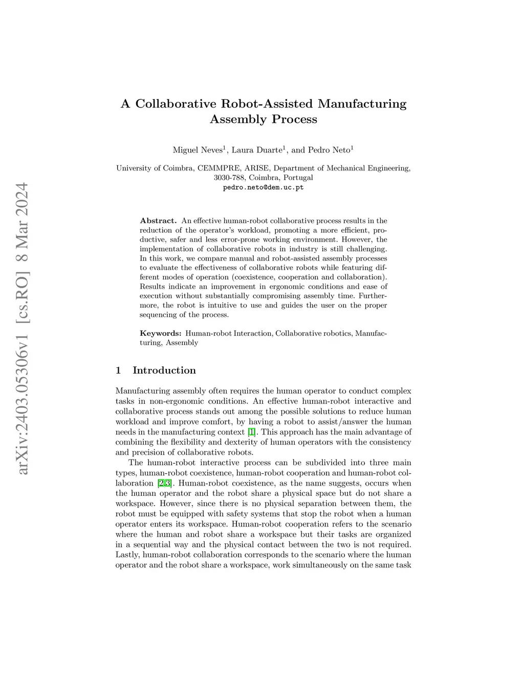 A Collaborative Robot-Assisted Manufacturing Assembly Process