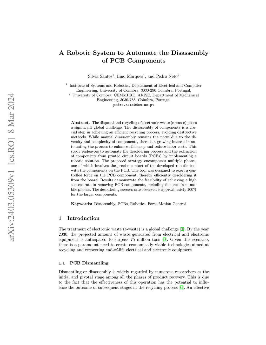 An in-Contact Robotic System for the Process of Desoldering PCB