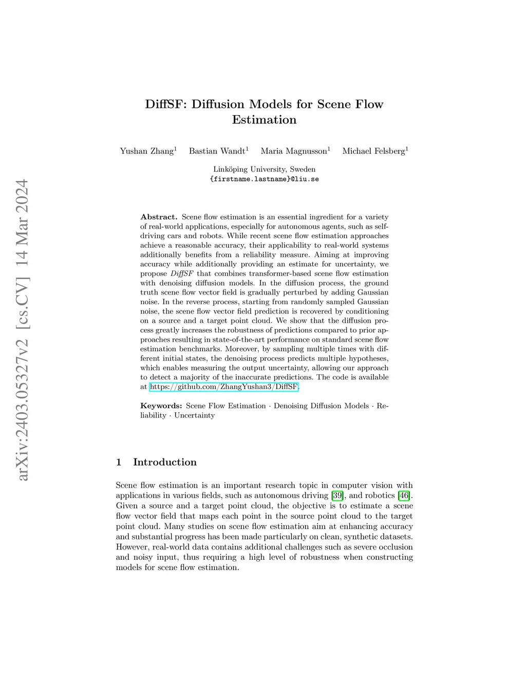 DiffSF: Diffusion Models for Scene Flow Estimation