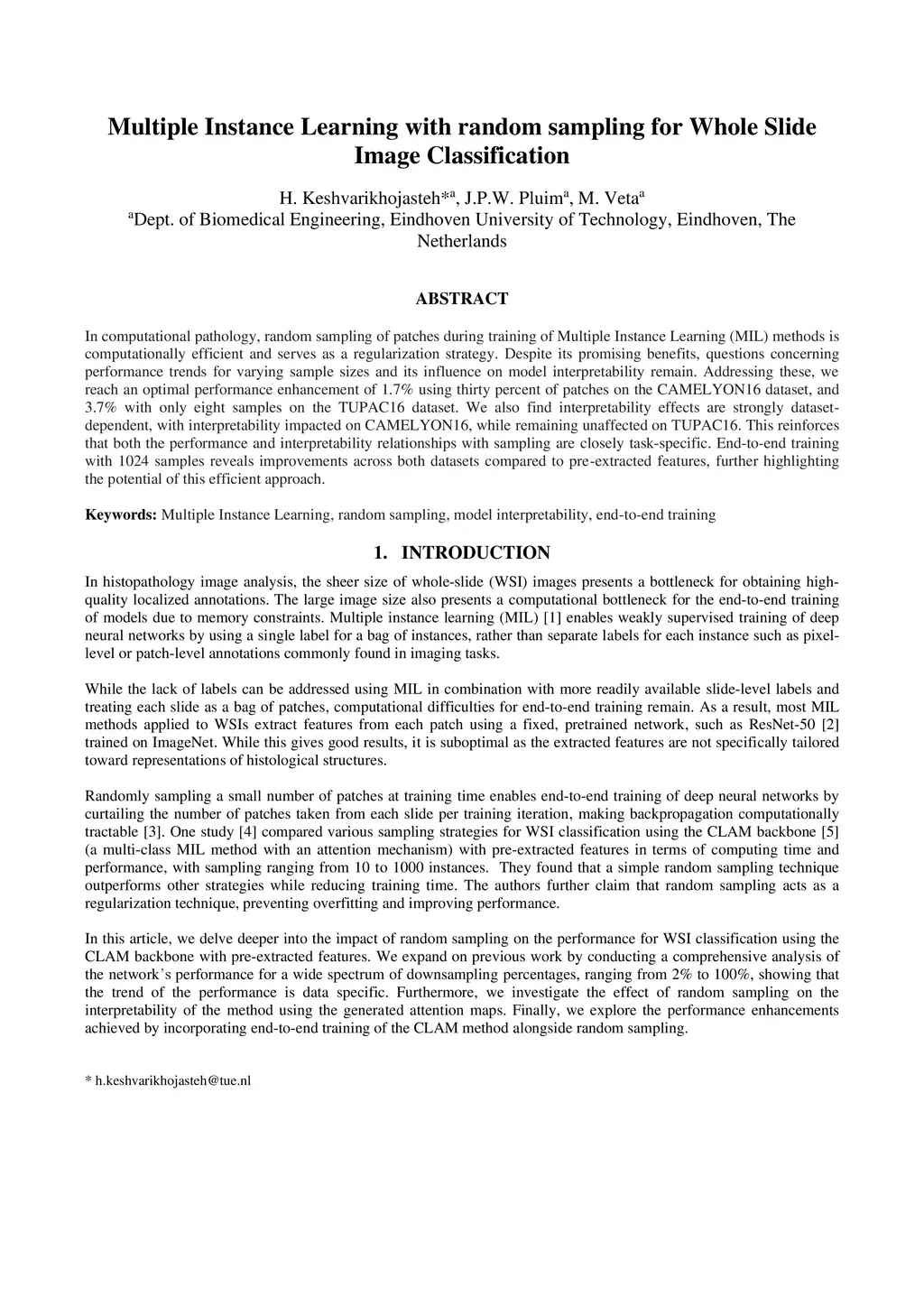 Multiple Instance Learning with random sampling for Whole Slide Image