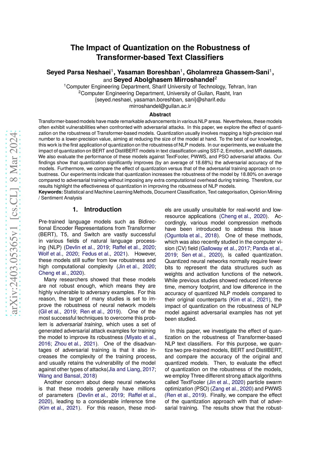 The Impact of Quantization on the Robustness of Transformer-based Text