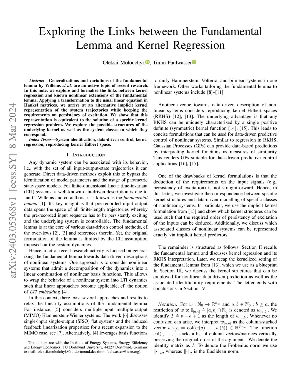 Exploring the Links between the Fundamental Lemma and Kernel Regression