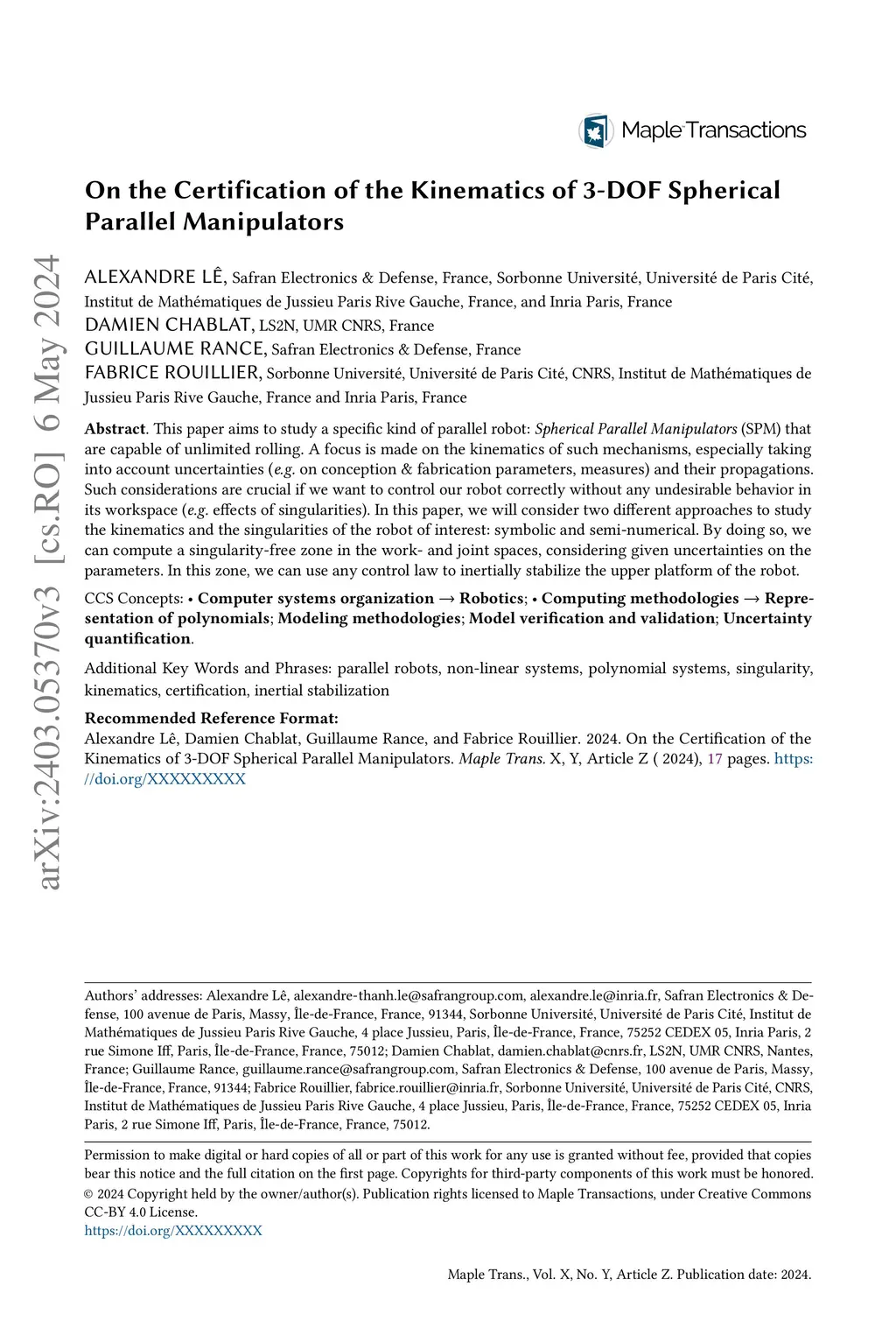 On the Certification of the Kinematics of 3-DOF Spherical Parallel