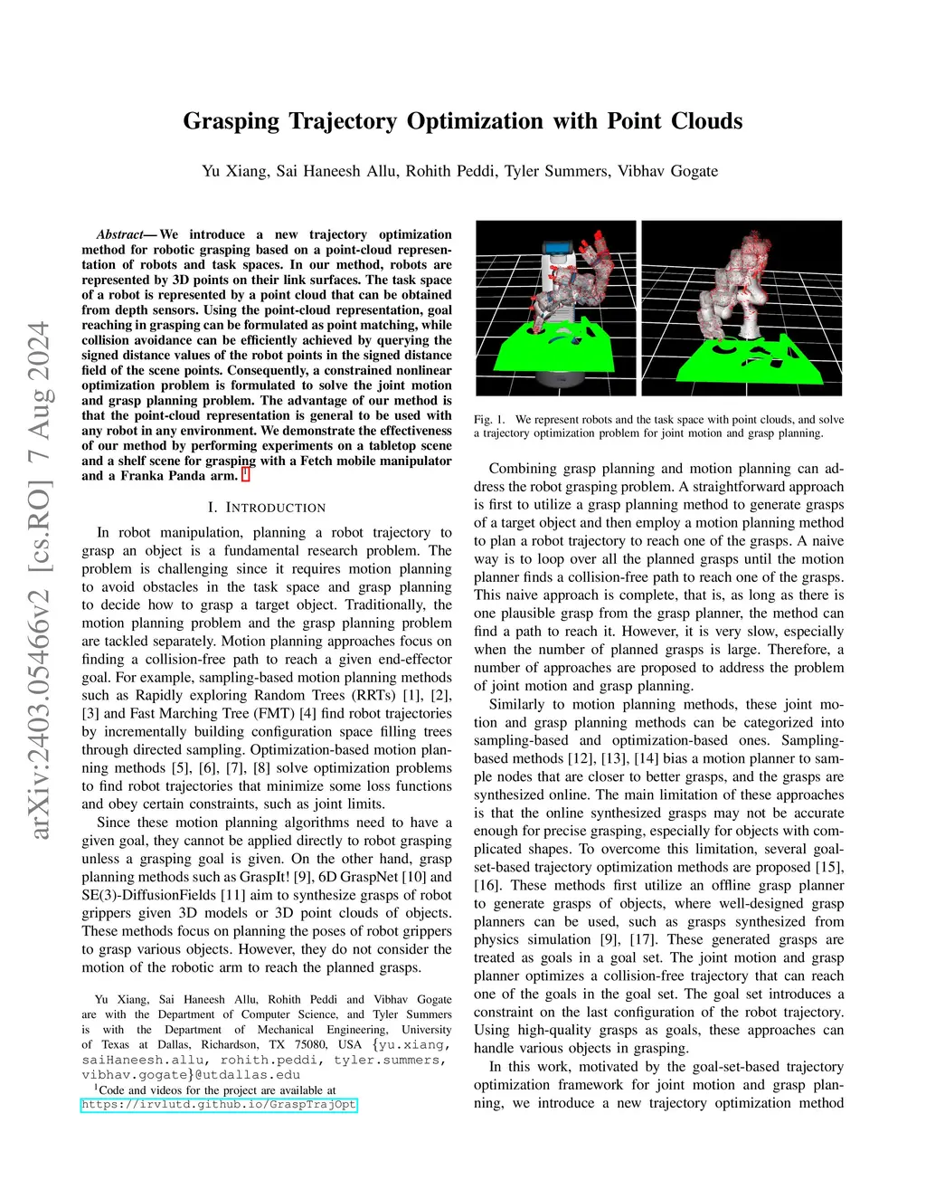 Grasping Trajectory Optimization with Point Clouds