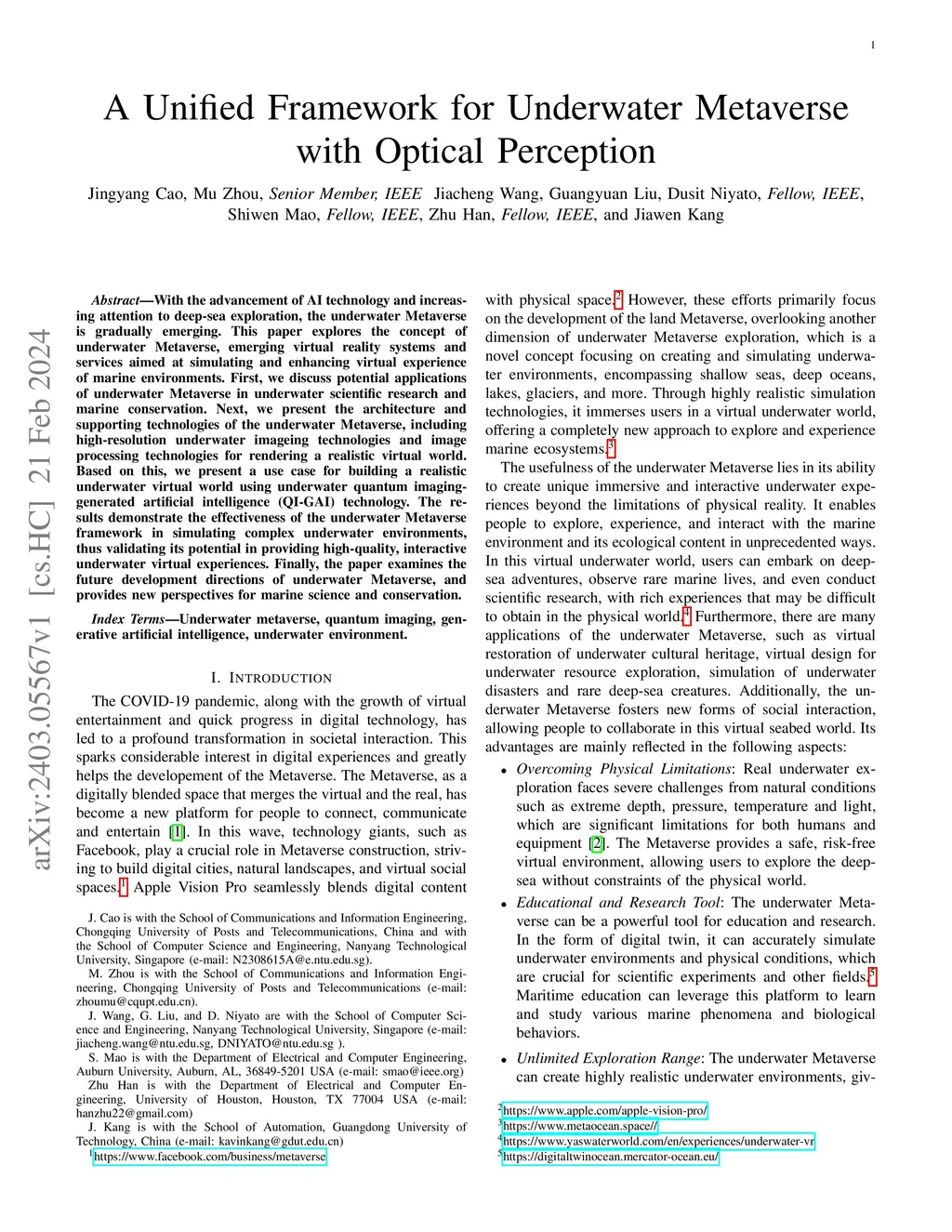 A Unified Framework for Underwater Metaverse with Optical Perception