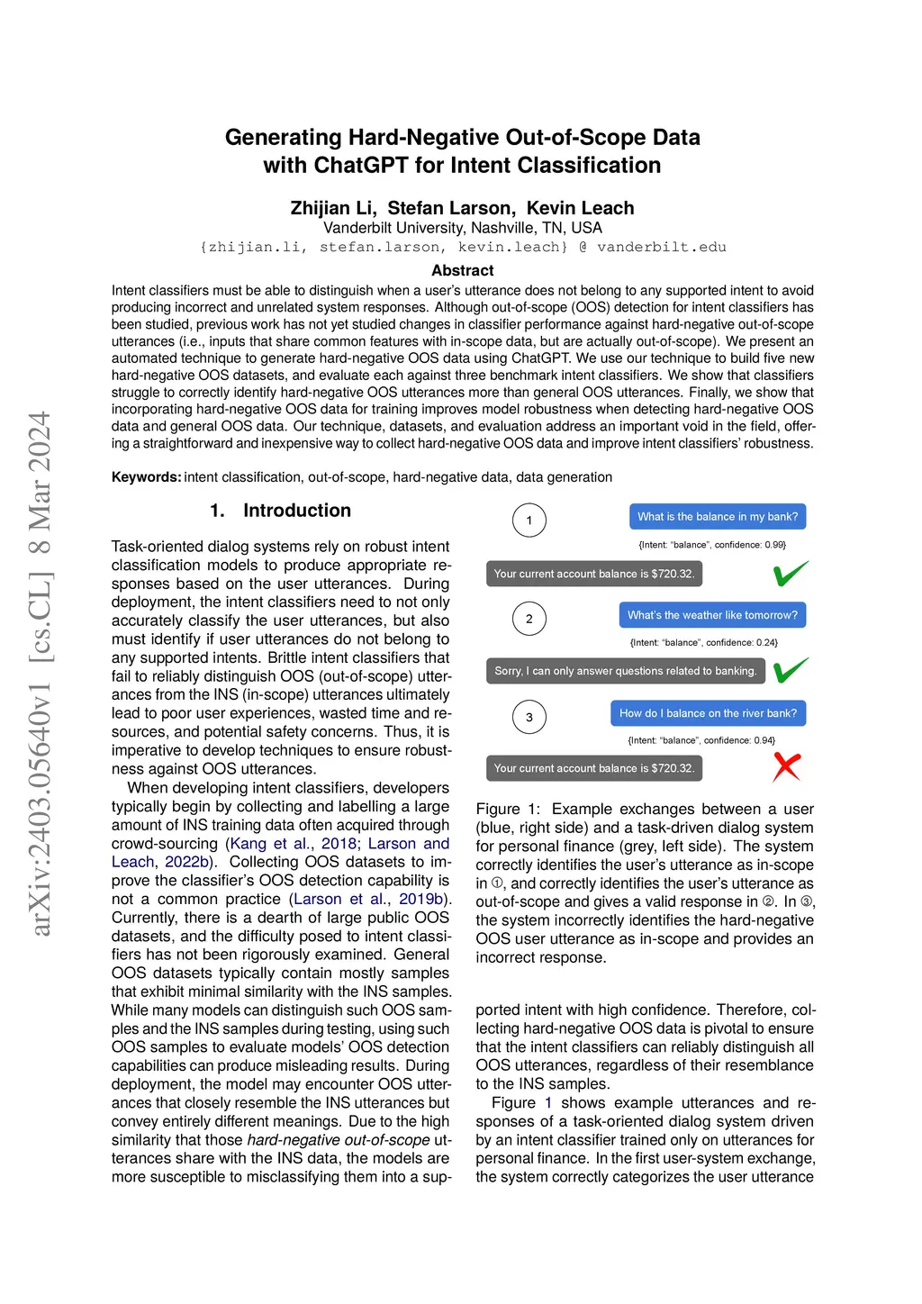 Intent classifiers must be able to distinguish when a user's utterance does not belong to any supported intent to avoid producing incorrect and unrelated system responses. Although out-of-scope (OOS) detection for intent classifiers has been studied, previous work has not yet studied changes in classifier performance against hard-negative out-of-scope utterances (i.e., inputs that share common features with in-scope data, but are actually out-of-scope). We present an automated technique to generate hard-negative OOS data using ChatGPT. We use our technique to build five new hard-negative OOS datasets, and evaluate each against three benchmark intent classifiers. We show that classifiers struggle to correctly identify hard-negative OOS utterances more than general OOS utterances. Finally, we show that incorporating hard-negative OOS data for training improves model robustness when detecting hard-negative OOS data and general OOS data. Our technique, datasets, and evaluation address an important void in the field, offering a straightforward and inexpensive way to collect hard-negative OOS data and improve intent classifiers' robustness.