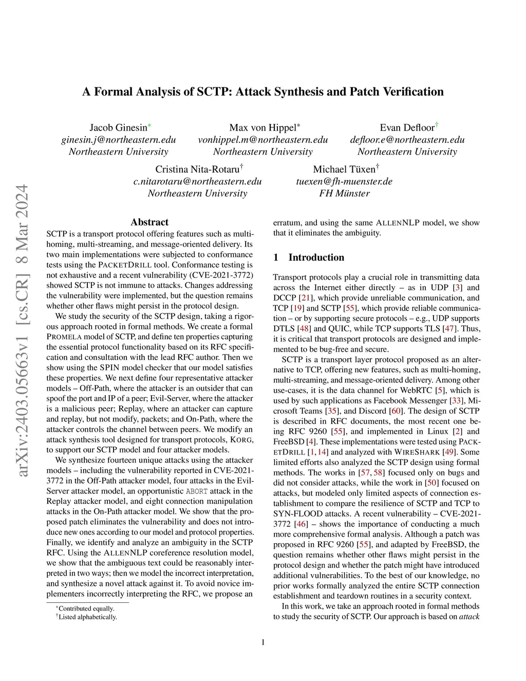 A Formal Analysis of SCTP: Attack Synthesis and Patch Verification