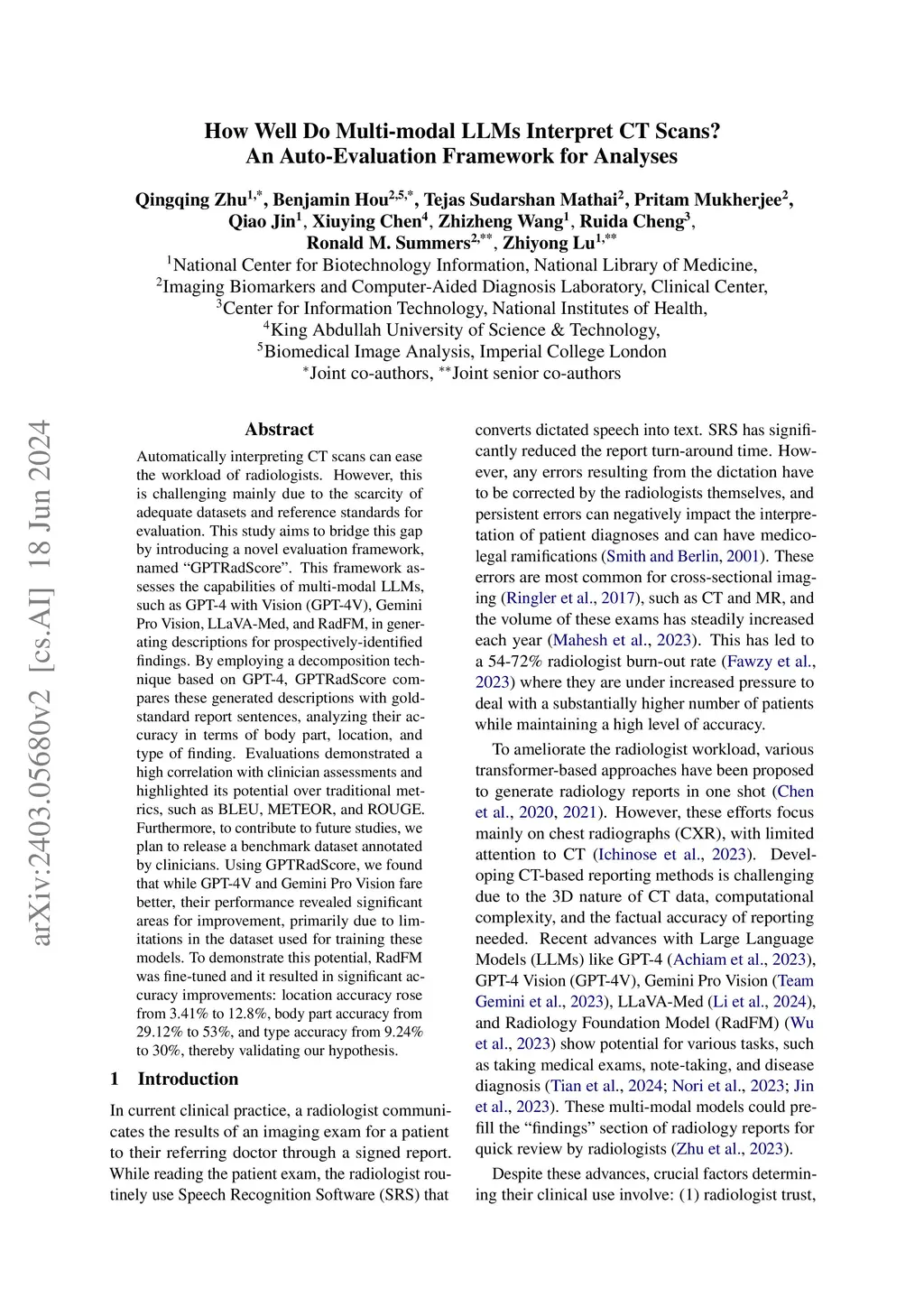How Well Do Multi-modal LLMs Interpret CT Scans? An Auto-Evaluation