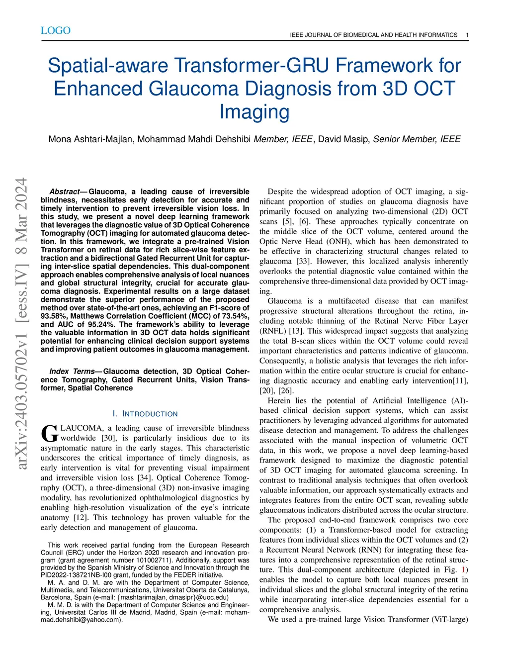 Spatial-aware Transformer-GRU Framework for Enhanced Glaucoma Diagnosis from 3D OCT Imaging