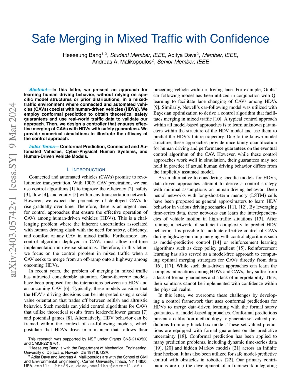 Safe Merging in Mixed Traffic with Confidence