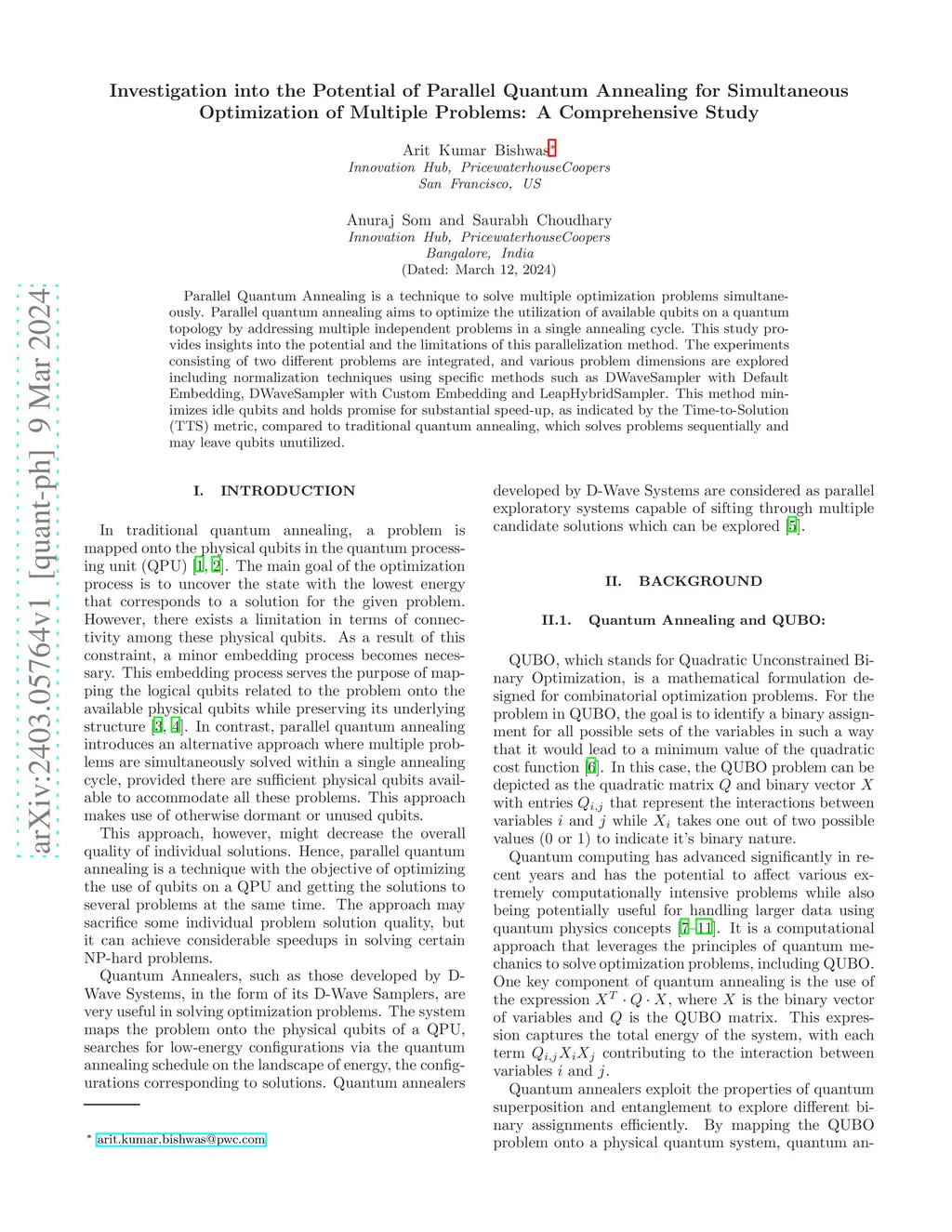 Parallel Quantum Annealing is a technique to solve multiple optimization problems simultaneously. Parallel quantum annealing aims to optimize the utilization of available qubits on a quantum topology by addressing multiple independent problems in a single annealing cycle. This study provides insights into the potential and the limitations of this parallelization method. The experiments consisting of two different problems are integrated, and various problem dimensions are explored including normalization techniques using specific methods such as DWaveSampler with Default Embedding, DWaveSampler with Custom Embedding and LeapHybridSampler. This method minimizes idle qubits and holds promise for substantial speed-up, as indicated by the Time-to-Solution (TTS) metric, compared to traditional quantum annealing, which solves problems sequentially and may leave qubits unutilized.