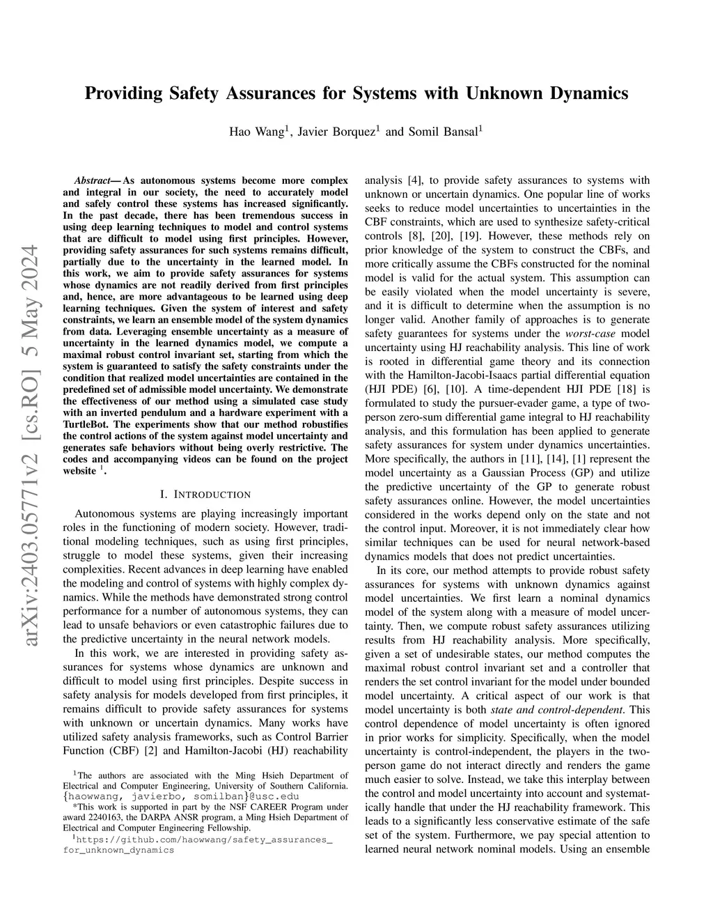 Providing Safety Assurances for Systems with Unknown Dynamics