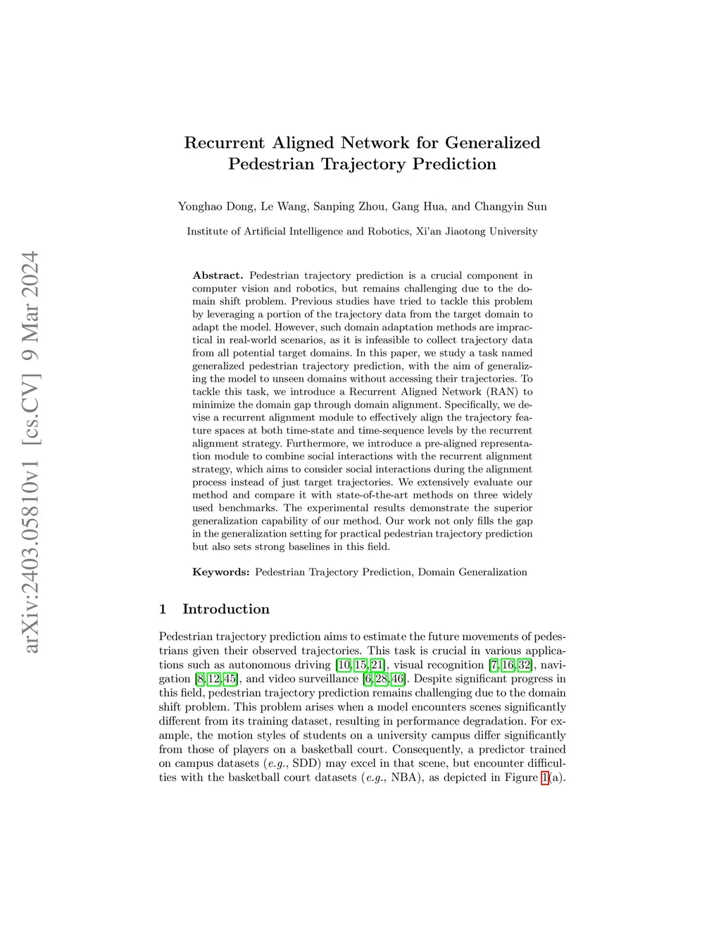 Recurrent Aligned Network for Generalized Pedestrian Trajectory