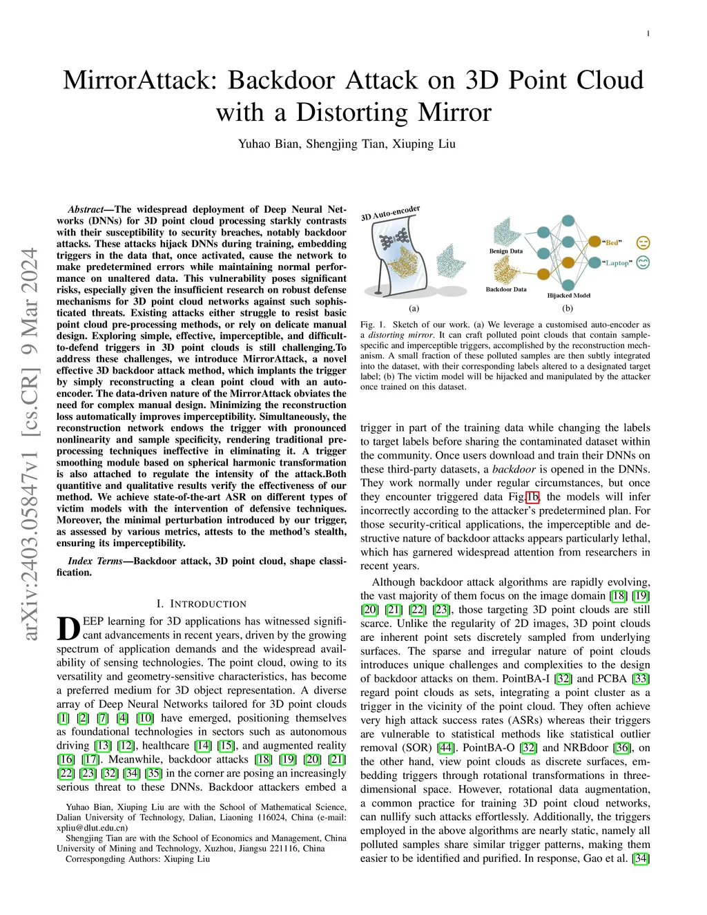 MirrorAttack: Backdoor Attack on 3D Point Cloud with a Distorting Mirror
