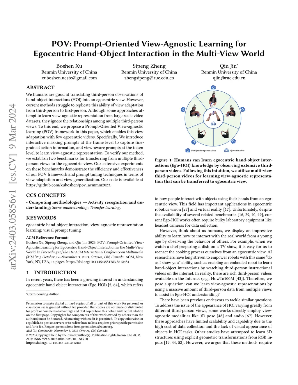 POV: Prompt-Oriented View-Agnostic Learning for Egocentric Hand-Object
