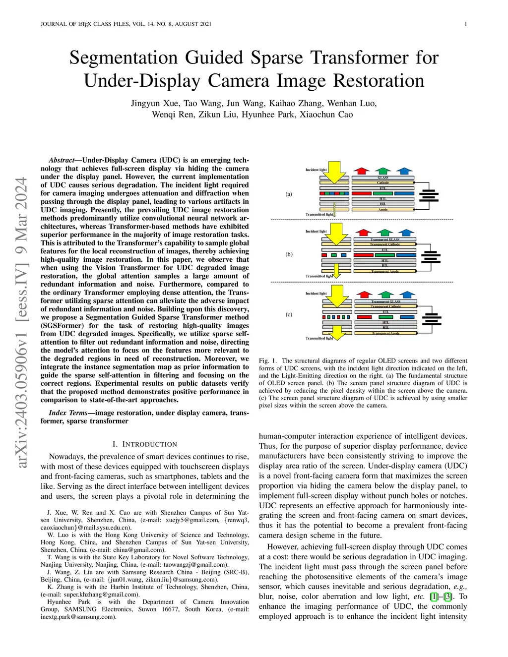 Segmentation Guided Sparse Transformer for Under-Display Camera Image Restoration