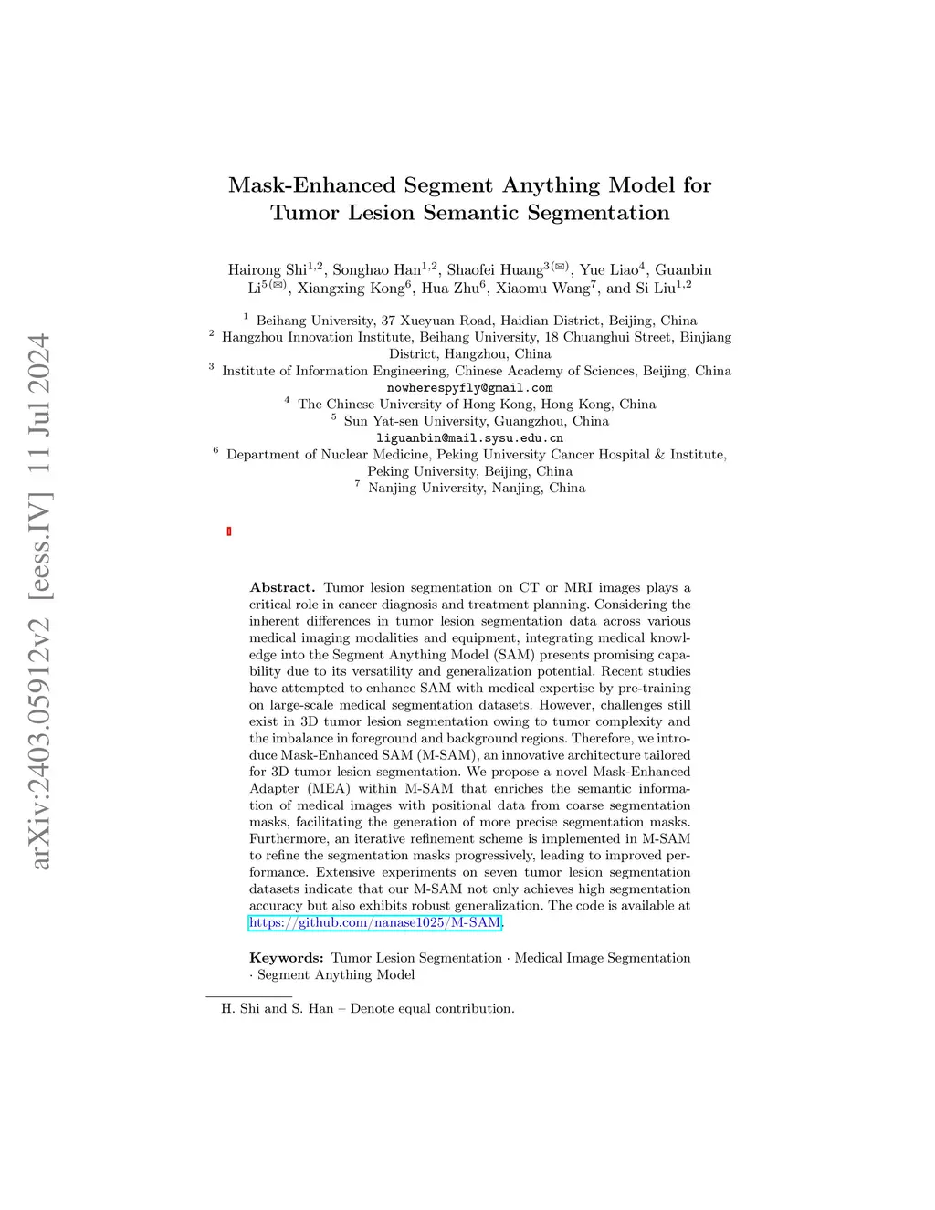 Mask-Enhanced Segment Anything Model for Tumor Lesion Semantic