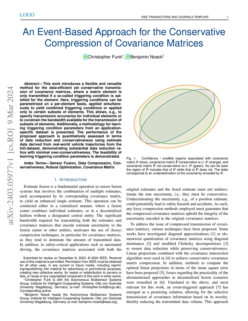 This work introduces a flexible and versatile method for the data-efficient yet conservative transmission of covariance matrices, where a matrix element is only transmitted if a so-called triggering condition is satisfied for the element. Here, triggering conditions can be parametrized on a per-element basis, applied simultaneously to yield combined triggering conditions or applied only to certain subsets of elements. This allows, e.g., to specify transmission accuracies for individual elements or to constrain the bandwidth available for the transmission of subsets of elements. Additionally, a methodology for learning triggering condition parameters from an application-specific dataset is presented. The performance of the proposed approach is quantitatively assessed in terms of data reduction and conservativeness using estimate data derived from real-world vehicle trajectories from the InD-dataset, demonstrating substantial data reduction ratios with minimal over-conservativeness. The feasibility of learning triggering condition parameters is demonstrated.