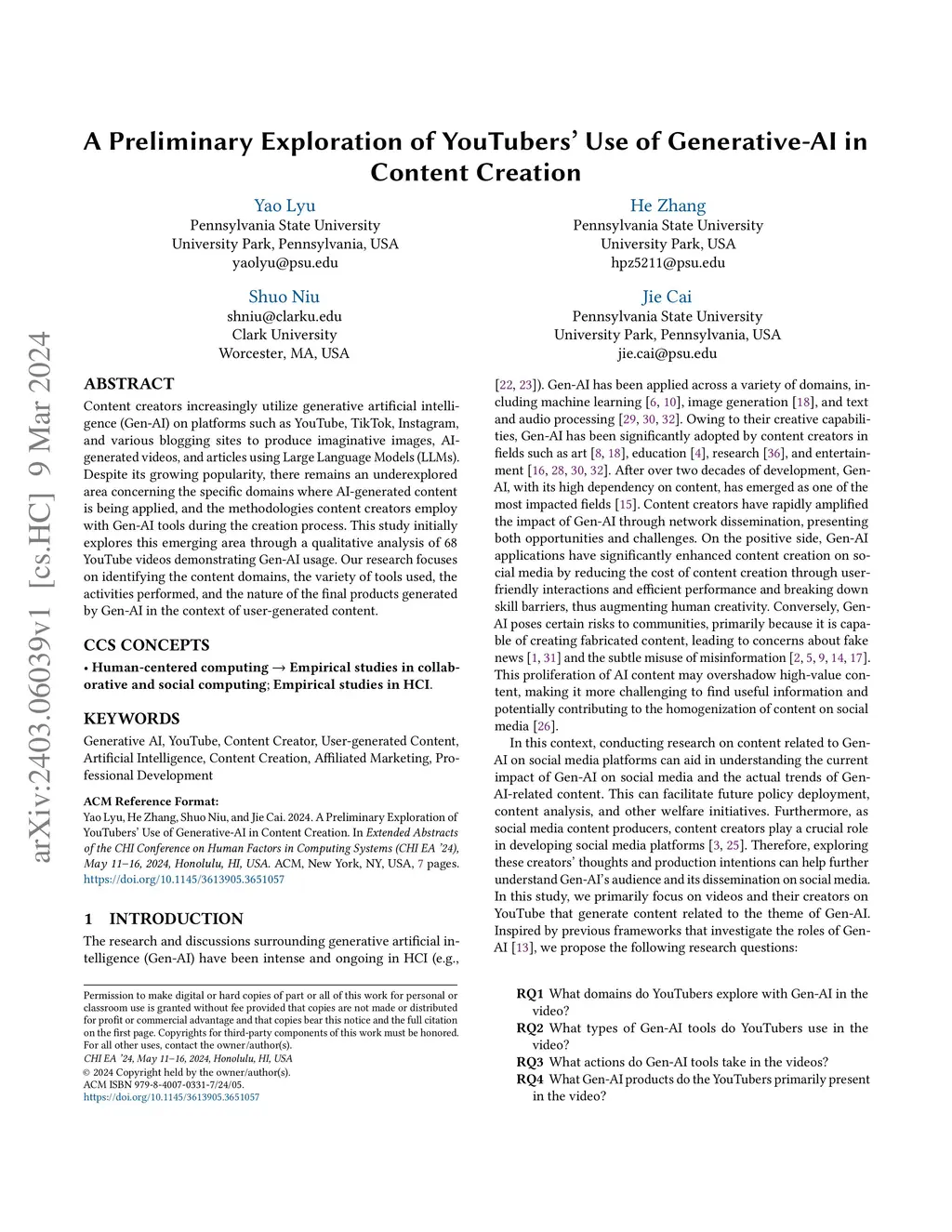 A Preliminary Exploration of YouTubers' Use of Generative-AI in Content