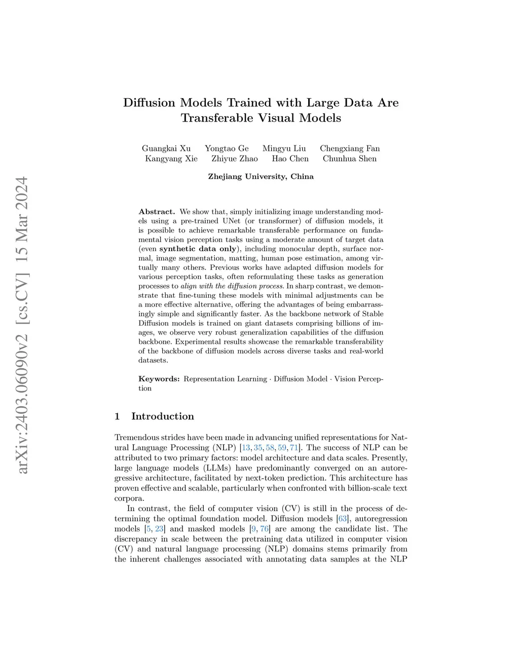 We show that, simply initializing image understanding models using a pre-trained UNet (or transformer) of diffusion models, it is possible to achieve remarkable transferable performance on fundamental vision perception tasks using a moderate amount of target data (even synthetic data only), including monocular depth, surface normal, image segmentation, matting, human pose estimation, among virtually many others. Previous works have adapted diffusion models for various perception tasks, often reformulating these tasks as generation processes to align with the diffusion process. In sharp contrast, we demonstrate that fine-tuning these models with minimal adjustments can be a more effective alternative, offering the advantages of being embarrassingly simple and significantly faster. As the backbone network of Stable Diffusion models is trained on giant datasets comprising billions of images, we observe very robust generalization capabilities of the diffusion backbone. Experimental results showcase the remarkable transferability of the backbone of diffusion models across diverse tasks and real-world datasets.