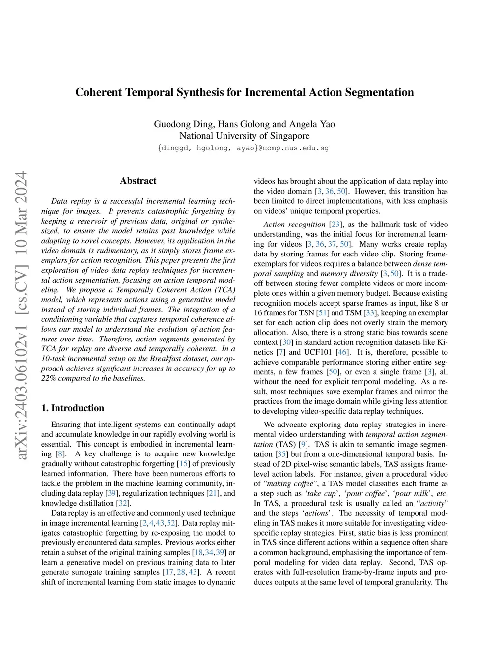 Coherent Temporal Synthesis for Incremental Action Segmentation