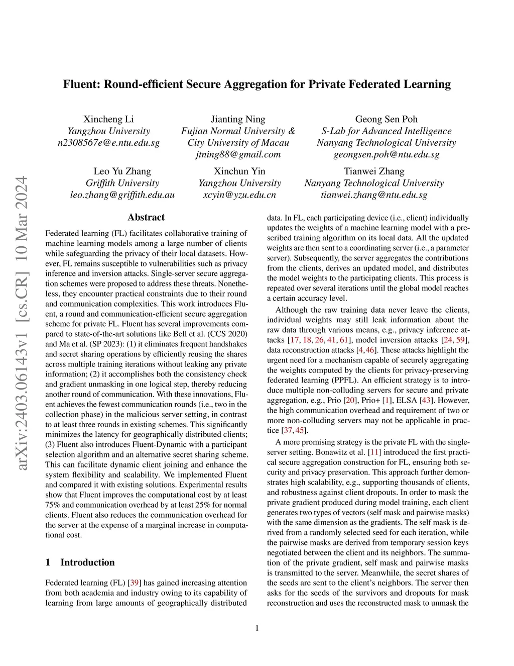 Fluent: Round-efficient Secure Aggregation for Private Federated