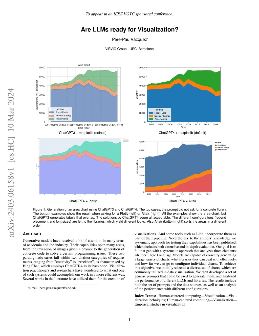 Generative models have received a lot of attention in many areas of academia and the industry. Their capabilities span many areas, from the invention of images given a prompt to the generation of concrete code to solve a certain programming issue. These two paradigmatic cases fall within two distinct categories of requirements, ranging from "creativity" to "precision", as characterized by Bing Chat, which employs ChatGPT-4 as its backbone. Visualization practitioners and researchers have wondered to what end one of such systems could accomplish our work in a more efficient way. Several works in the literature have utilized them for the creation of visualizations. And some tools such as Lida, incorporate them as part of their pipeline. Nevertheless, to the authors' knowledge, no systematic approach for testing their capabilities has been published, which includes both extensive and in-depth evaluation. Our goal is to fill that gap with a systematic approach that analyzes three elements: whether Large Language Models are capable of correctly generating a large variety of charts, what libraries they can deal with effectively, and how far we can go to configure individual charts. To achieve this objective, we initially selected a diverse set of charts, which are commonly utilized in data visualization. We then developed a set of generic prompts that could be used to generate them, and analyzed the performance of different LLMs and libraries. The results include both the set of prompts and the data sources, as well as an analysis of the performance with different configurations.