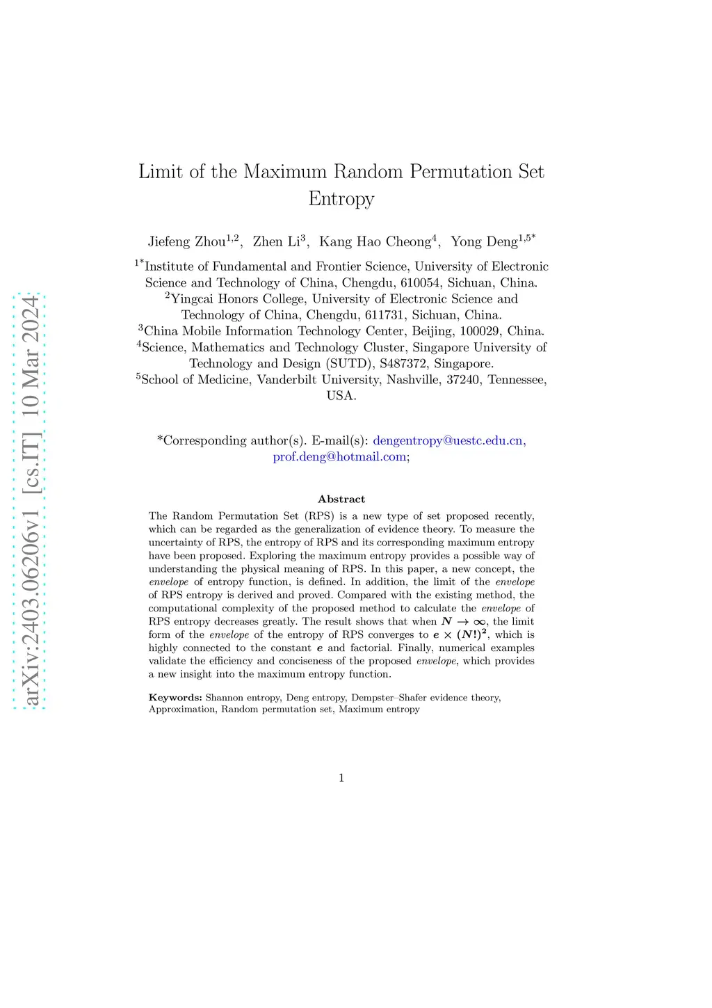 Limit of the Maximum Random Permutation Set Entropy