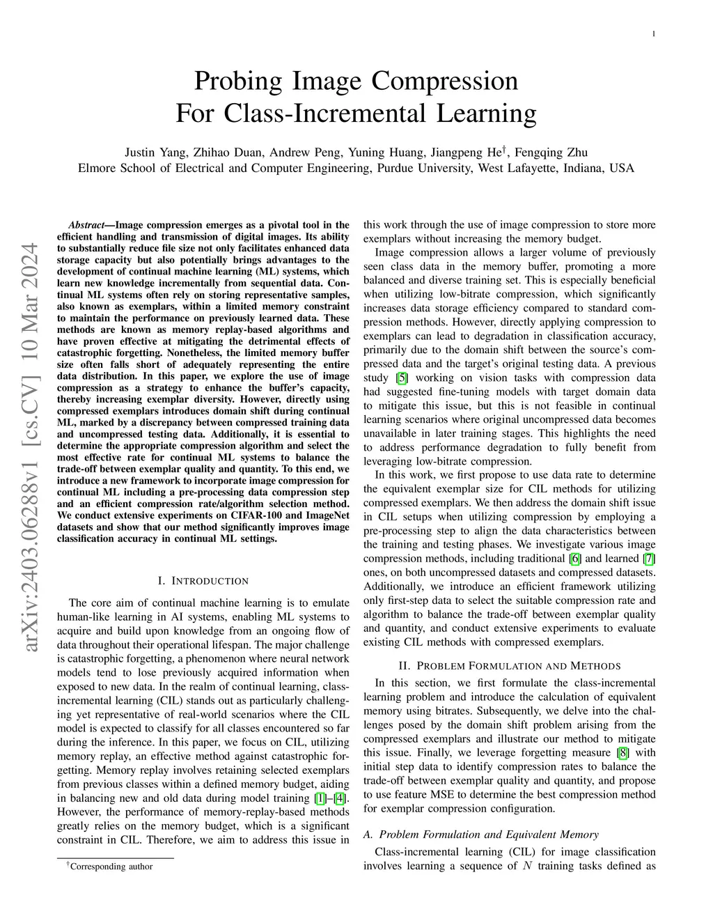 Probing Image Compression For Class-Incremental Learning
