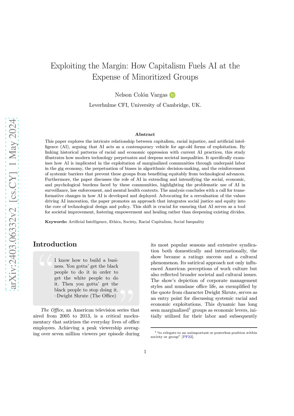 This paper explores the intricate relationship between capitalism, racial injustice, and artificial intelligence (AI), arguing that AI acts as a contemporary vehicle for age-old forms of exploitation. By linking historical patterns of racial and economic oppression with current AI practices, this study illustrates how modern technology perpetuates and deepens societal inequalities. It specifically examines how AI is implicated in the exploitation of marginalized communities through underpaid labor in the gig economy, the perpetuation of biases in algorithmic decision-making, and the reinforcement of systemic barriers that prevent these groups from benefiting equitably from technological advances. Furthermore, the paper discusses the role of AI in extending and intensifying the social, economic, and psychological burdens faced by these communities, highlighting the problematic use of AI in surveillance, law enforcement, and mental health contexts. The analysis concludes with a call for transformative changes in how AI is developed and deployed. Advocating for a reevaluation of the values driving AI innovation, the paper promotes an approach that integrates social justice and equity into the core of technological design and policy. This shift is crucial for ensuring that AI serves as a tool for societal improvement, fostering empowerment and healing rather than deepening existing divides.