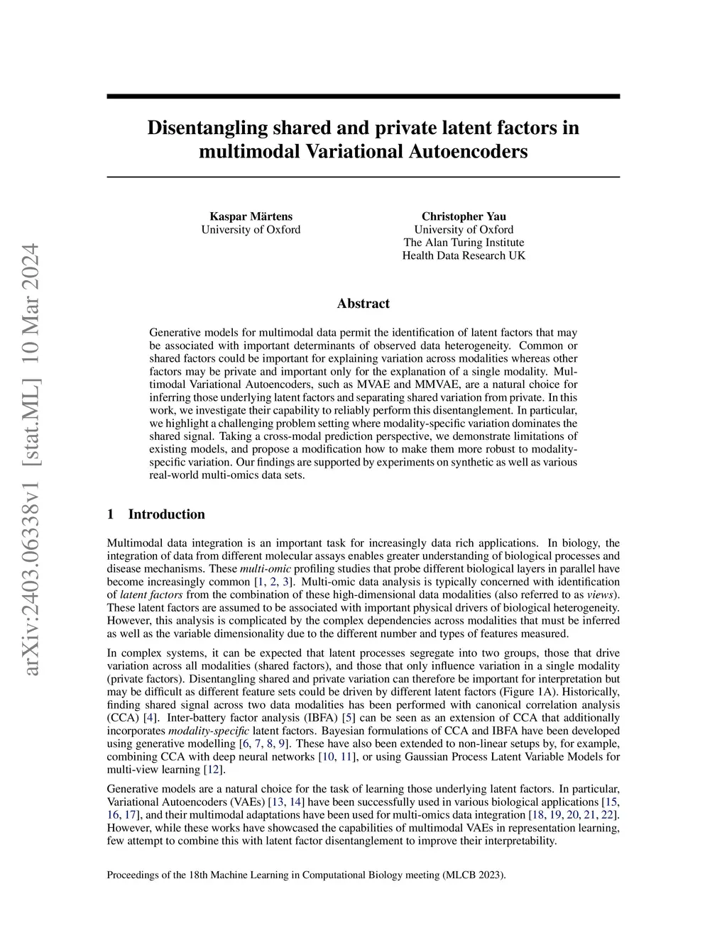 Disentangling shared and private latent factors in multimodal