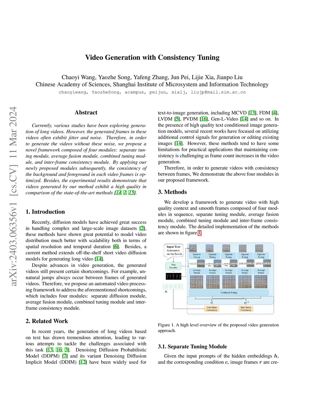 Currently, various studies have been exploring generation of long videos. However, the generated frames in these videos often exhibit jitter and noise. Therefore, in order to generate the videos without these noise, we propose a novel framework composed of four modules: separate tuning module, average fusion module, combined tuning module, and inter-frame consistency module. By applying our newly proposed modules subsequently, the consistency of the background and foreground in each video frames is optimized. Besides, the experimental results demonstrate that videos generated by our method exhibit a high quality in comparison of the state-of-the-art methods.